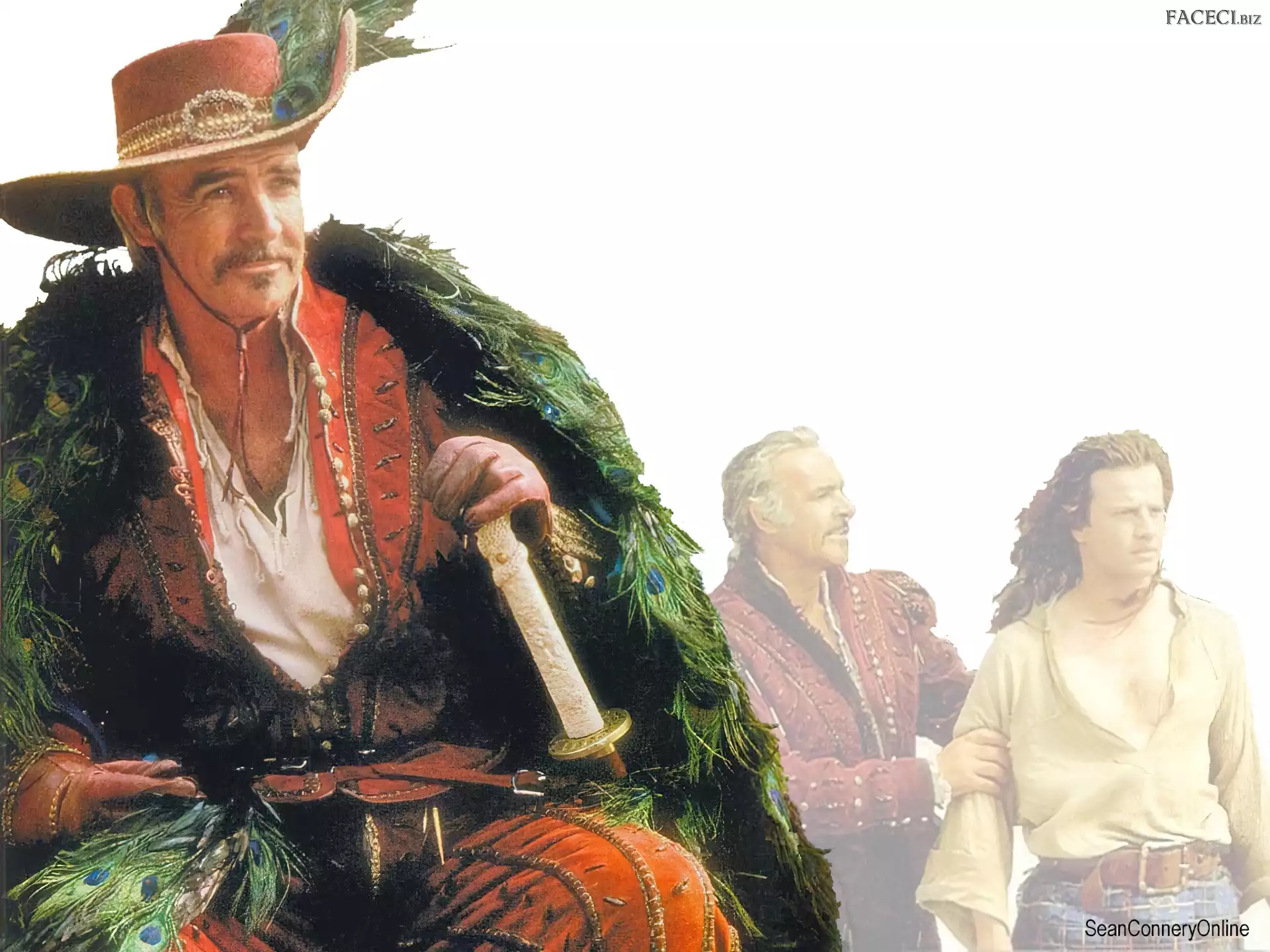 Sean Connery, wąsy Sean Connery, czarny strój Sean Connery, Kapelusz Sean Connery, Kapelusz kwiatek, Sean Connery, muszka Sean Connery, płyta Sean Connery, czarny garnitur Sean Connery, koszula w paski Sean Connery, ciemne oczy twarze, Sean Connery, miecz Sean Connery, miecz Sean Connery, siwe włosy Sean Connery, pistolet Sean Connery, zdjęcia